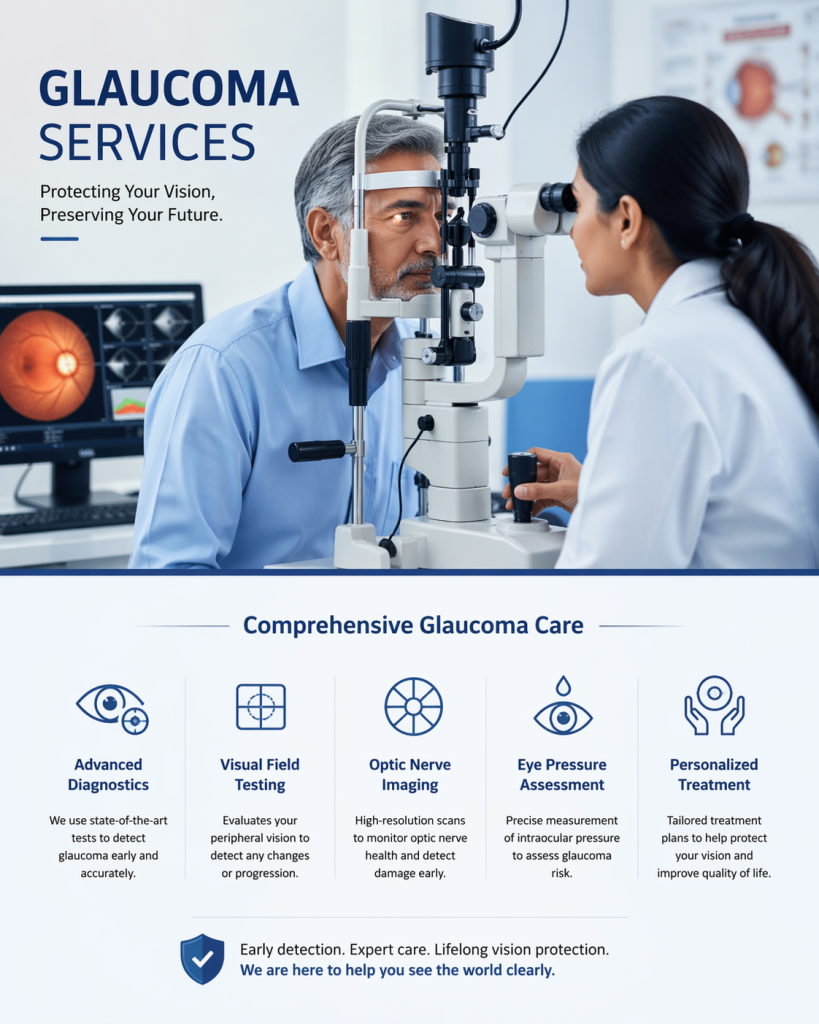 The institute is equipped with all the instrumentation that is needed for Glaucoma Screening, diagnosis and treatment follow up as detailed below