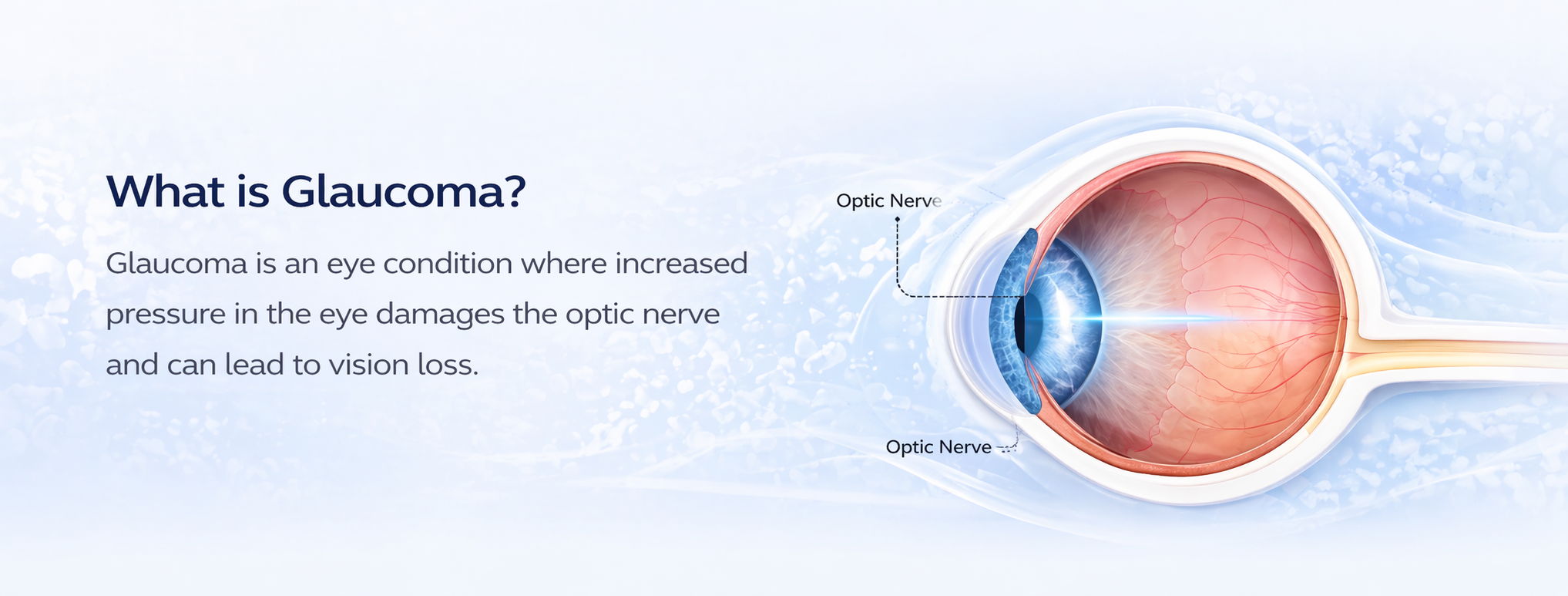Glaucoma refers to a category of eye disorders often associated with a dangerous buildup of internal eye pressure(intraocular pressure or IOP), which can damage the eye’s optic nerve that transmits visual information to the brain. With untreated or uncontrolled glaucoma, one might eventually notice decreased ability to see at the edges of peripheral vision. Progressive eye damage could then lead to blindness. In fact, glaucoma is the second leading cause of blindness.
